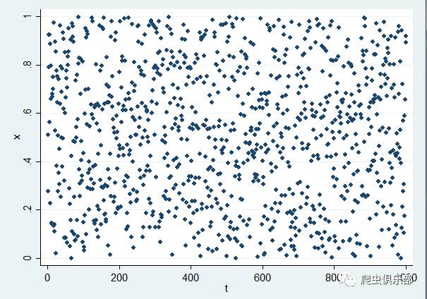 twoway scatter x t //绘制关于x、t的散点图(见图2)