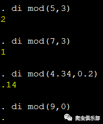 给出x除以y之后的余数,即:mod(x,y) = x - y*int(x/y),举例: