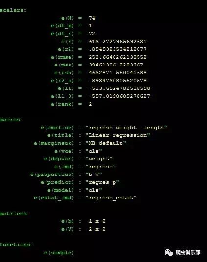 e-classe-class一般在我们用stata做模型估计的时候出现,比如regress或logistic,这也是与r-class,s-class,c-class的主要区别。