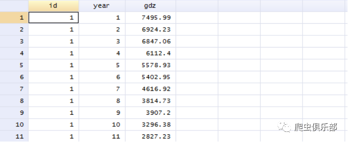 现在,我们想把这份Excel中的数据读取到Stata中,形成NxTxV(31个省x16年x8个变量)的面板数据,那么就需要在推文《如何用Stata批量读取多张工作表的Excel文件》介绍的方法上增加数据长型和宽型转换的命令(reshape命令)。在转换时,需要指定reshape的对象,具体到全社会固定资产投资额表中也就是“gdz”,为了能将“gdz”这串字符提取出来,需要用到ds命令的返回值。(ds命令详见往前推文ds命令:查看和描述变量)