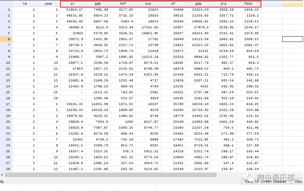 当我们满心欢喜的打开数据窗口的时候,却惊讶的发现得到的stata结果却是这样的: