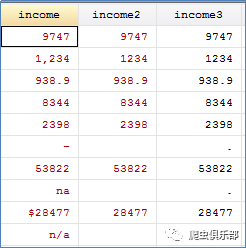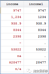 字符型格式储存的混合变量income的转变