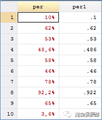 最后,以变量per的转换为例,我们介绍一下命令destring的选项percent和dpcomma的用法,代码如下: