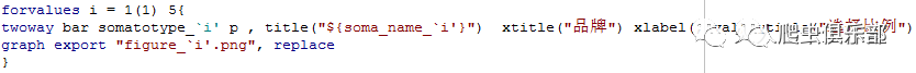 终于来到最后一步——作图了。但是,我们可以直接作图吗?我们这次需要做的是柱形图,使用的基本语句是“twoway bar yvar xvar”,换句话说,我们要用到两个变量,一个表示品牌的名称,一个表示某一体型偏好各品牌的比例,然而,我们并没有表示品牌的变量。嗷,又出现了问题。那怎么办呢?