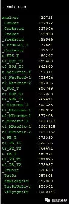 比如查看变量分析师(analyst)和本期评级(_CurRat)的缺失值个数