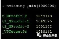 注意:查看缺失值个数小于某一值的变量的缺失值,使用nmissing,max()得到的结果是有问题的。