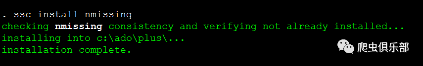 当我们得到一份数据的时候,我们通常会先看数据有多少,缺失多少。那么,如何快速查看数据的缺失值呢?可以用命令nmissing来查看。