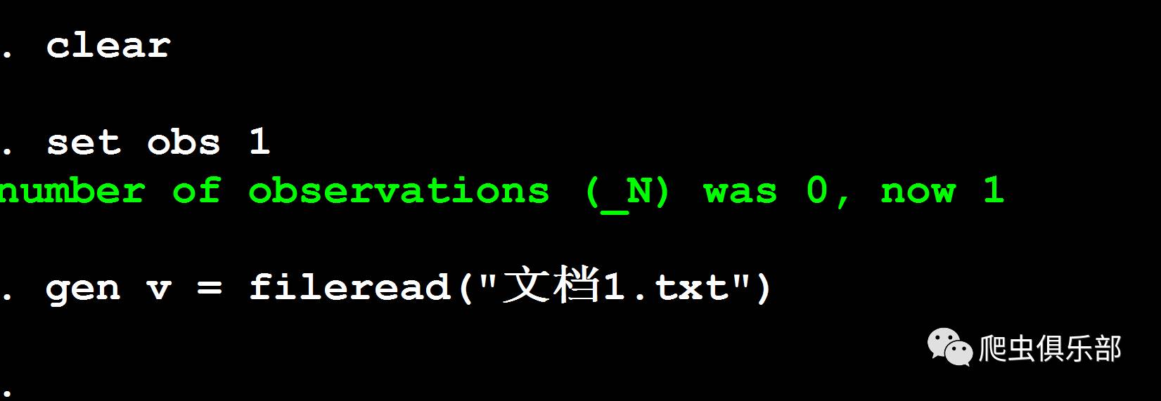 使用fileread()函数时还需要注意的是:命令执行时,stata是不会报错的,比如当我们读入一个不存在的文档1.txt。
