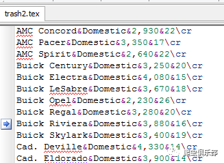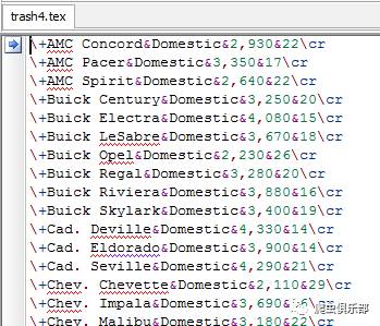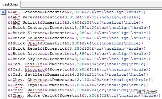listtab make foreign weight mpg using d:/trash3.tex, b(&&) d(&&) e(&\cr{\noalign{\hrule}}) replace // b是begin的缩写、e是end()的缩写、d是delimiter()的缩写,即每一行以&&开始、&\cr{\noalign{\hrule}}结束,观测值间用&&分割并保存到d:/trash3.tex
