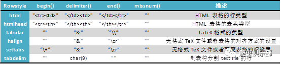 命令listtab常用的选项有选项begin(), end(), delimiter() and missnum(),具体介绍如下表所示: