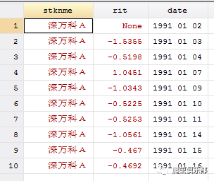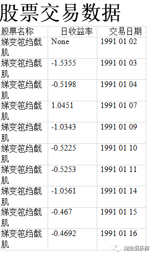 head("`b'\ql{`=ustrto("股票代码","gb2312",1)'}`d'\qr{`=ustrto("日收益率","gb2312",1)'}`d'\qr{`=ustrto("交易日期","gb2312",1)'}`e'")