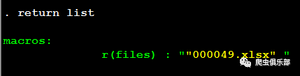 文件名虽然列出来了,但是还不够,问题的关键是我们如何引用文件名,不过这也不是什么大大问题,因为fs命令在列出文件名的同时会自动将文件名存在返回值里,我们只需要引用fs命令的返回值r(files)就可以了。