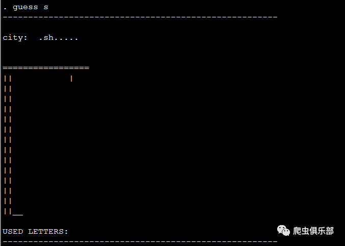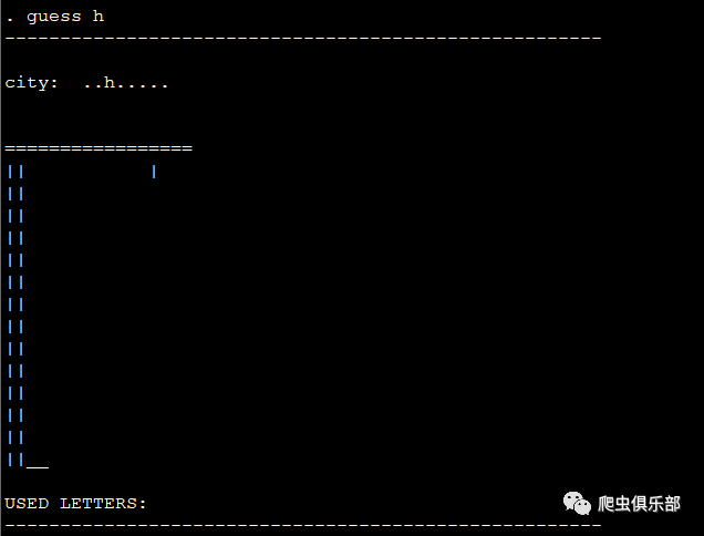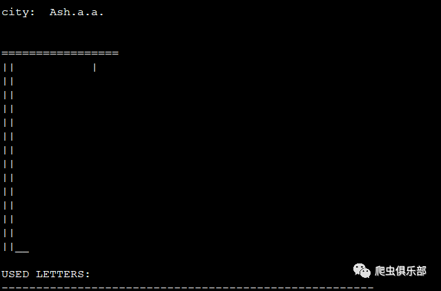 如果在一次游戏中,你累积了6次猜测错误时,会显示小人“上吊”图案,如下所示: