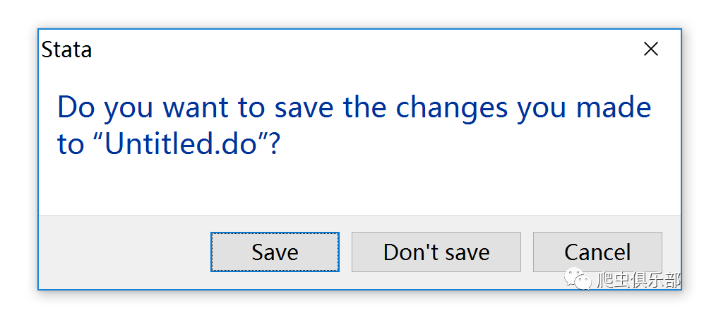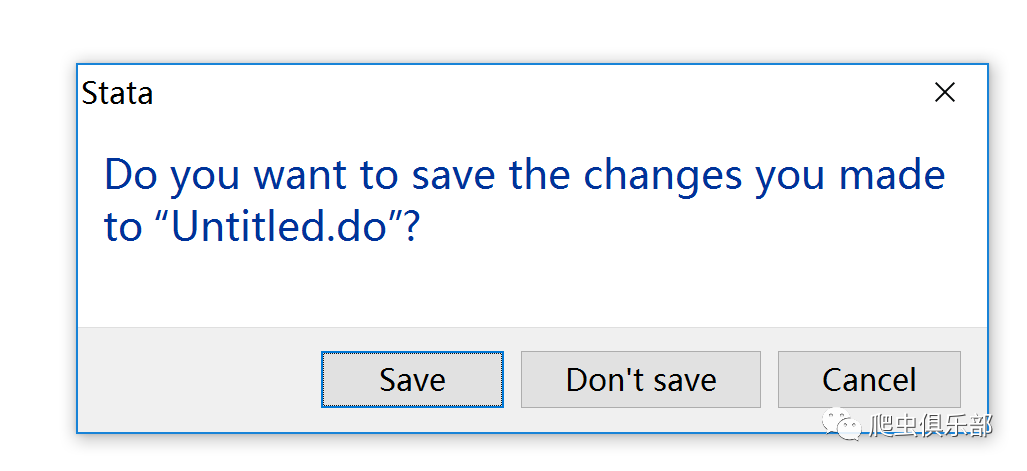 相 信很多朋友都有过这也的经历,在关闭Stata或者do文件的时候,没有对do文件进行保存,手残地点了Don’t Save,有时候关闭掉的可能是一下午的努力成果,这时候一定剁手砸电脑的心都有了。Stata15很人性化的允许我们“手残”一次,如果我们关闭一个未 保存的do文件,这个时候会弹出窗口: