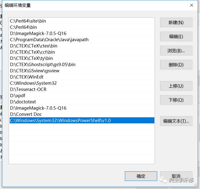 双击弹出窗口的中系统变量下面的Path,在弹出来的编辑环境变量窗口中,把PowerShell的路径加到最后。