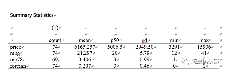 利用auto.dta数据,做一个描述性统计,并用esttab命输出到rtf文件中