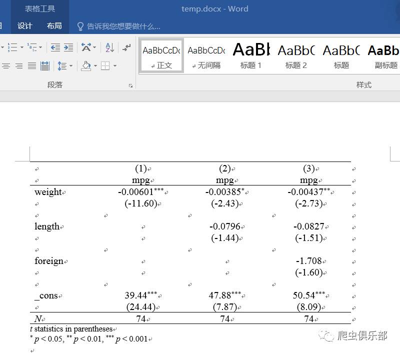 执行后,回归结果的表格就拼接到了之前保存的mytable.docx文档中。