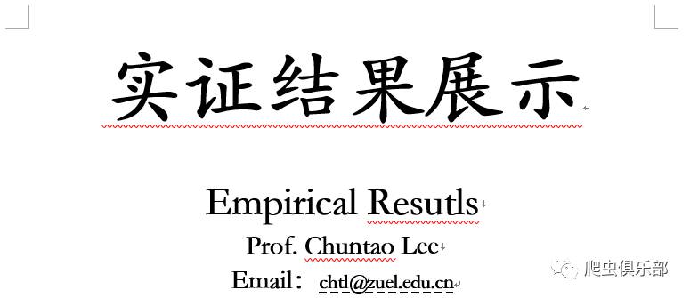 putdocx text ("Empirical Resutls"), font("华文楷体",30,black) bold linebreak //输出加粗文本"Empirical Resutls",字体为华文楷体,字号为30,颜色为黑色,并换行。
