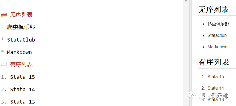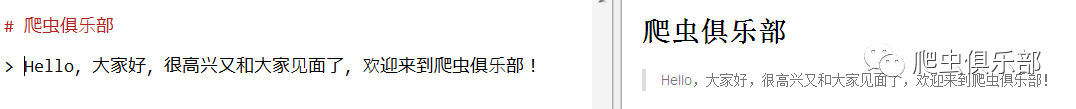 效果如下图(左边为Markdown语法编写,右边为展示效果,下同)。