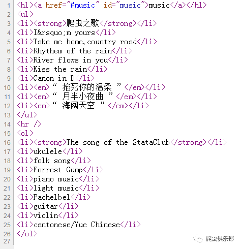 图2: Markdown命令转换后,在浏览器中显示的文本