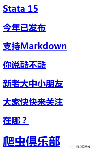 上图是使用Stata 15中的Markdown命令,将Markdown文档转换成HTML文件,并在浏览器中显示出的文本效果。