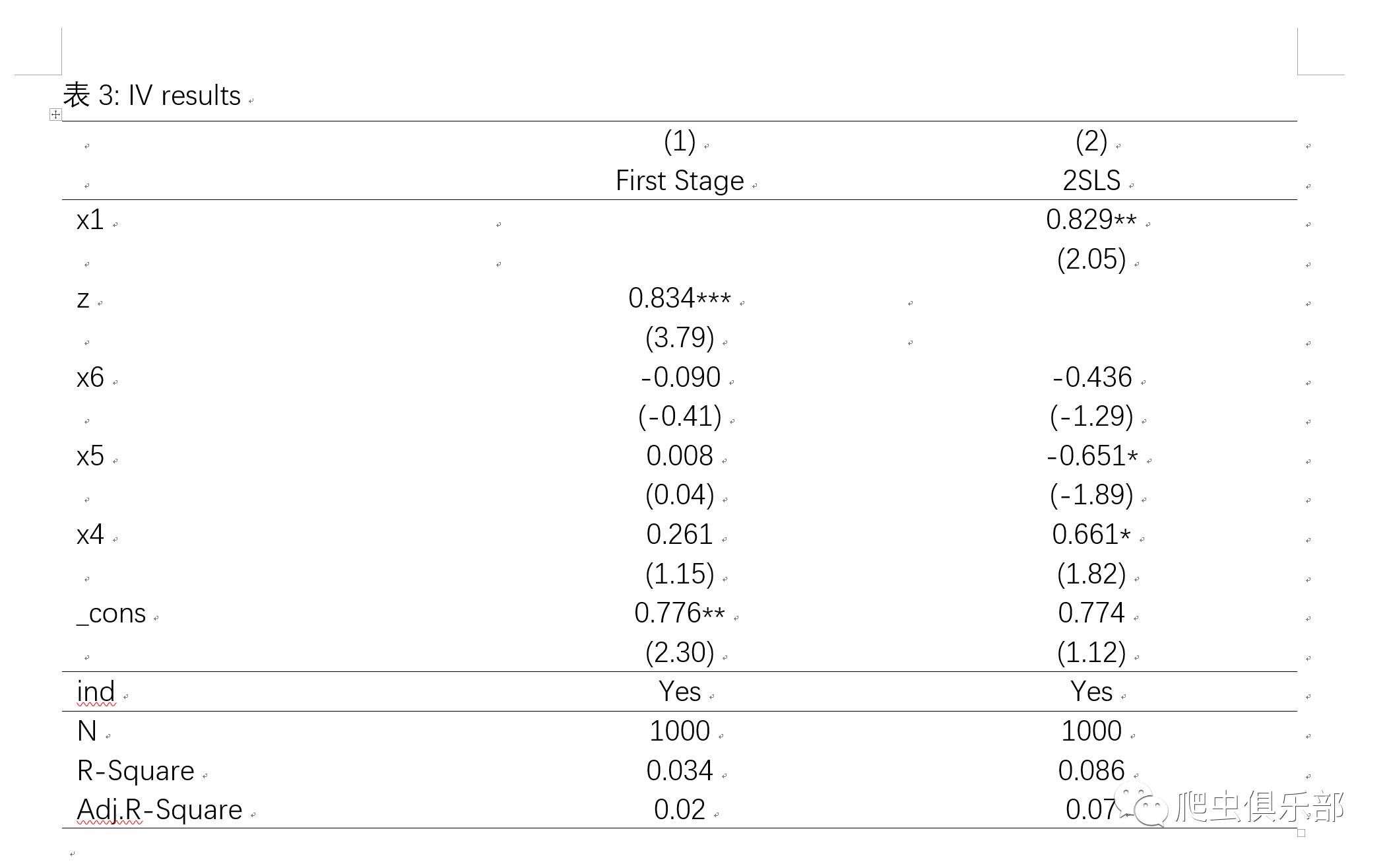 我们将z作为x1的工具变量,将两阶段的结果输出到mytable.docx中。