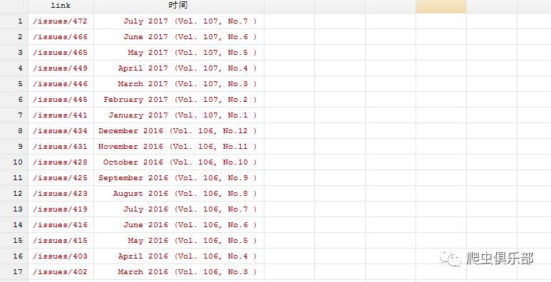 最重要的一步来了,我们根据每篇文章的链接抓取我们需要的期刊号,时间,作者,文章标题。