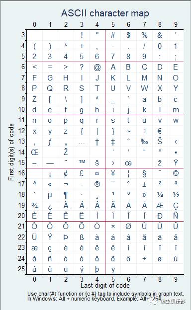 ASCII编码一共对应着256个字符,其中包括字母数字符号等等,一一记住似乎不太可能,那么当我们需要利用ASCII编码时有什么办法能让我们快速get到呢,机智的stata给我们提供了解决办法:ascii命令