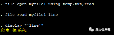 我们生成的temp.txt有3行内容,且每一行内容都不一样。现在我们用file read命令读入stata,需要说明的是,该命令一次只能读入一行内容,键入如下所示命令: