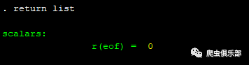 那如果我们想要读入所有内容,该怎么实现呢?其实,file read命令在读入文本文件的第一行内容后,生成了一个返回值r(eof),用于判断是否是最后一行的末尾,如果不是,r(eof)=0,否则r(eof)=1。如下所示,刚才读入temp.txt的第一行后,返回值r(eof)=0。