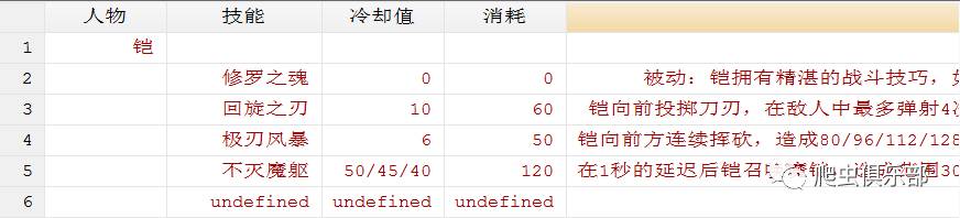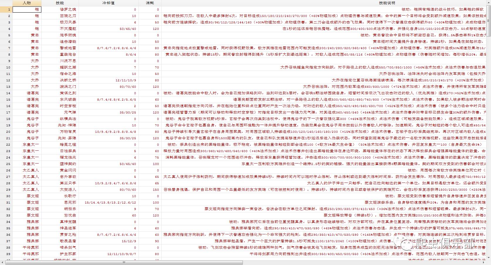 综上我们就得到了一个完整的英雄技能数据,结果如下:
