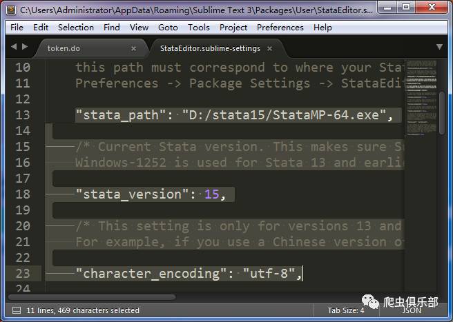 第三步:把Preferences>Package Settings>StataEditor>Settings>Default里的文本复制到Preferences>PackageSettings>StataEditor>Settings>User里。需要改动三处。