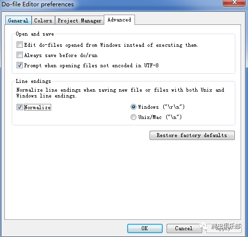 第一步:点开stata,在stata的Do-file Editor > Edit > Preferences的Advanced一栏中,把Edit do-files opened from Windows instead of executing them前面的勾取消。点击apply再点击OK。
