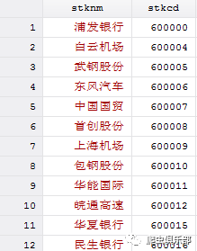 下面,我们就可以用cnstock命令来得到上市公司的公司名称以及股票代码: