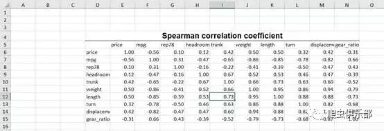 ok,就这样我们把spearman相关系数矩阵导出到Excel表格中。完整的命令如下: