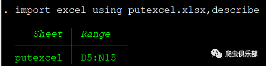 通过import excel using putexcel.xlsx,describe查看Excel内容范围。