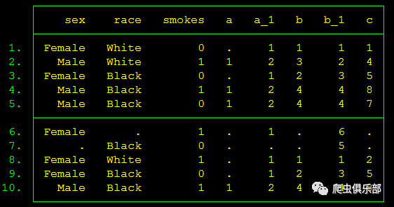 egen c=group(race sex smokes) //对race sex smokes分组
