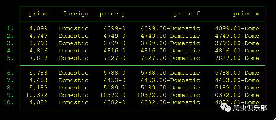 gen price_p=concat(price foreign),punct("-") //以"-"为连接符,默认为显示数据的值。