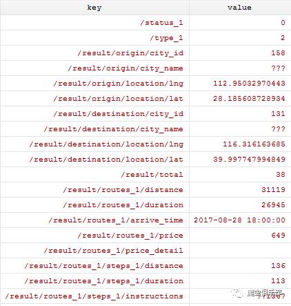 现在我们以一份百度地图API返回给我们的json文件为例,这个json文件告诉了我们如何从湖南大学乘坐公共交通抵达北京大学。