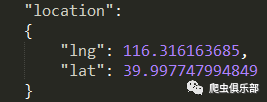 我们举一个例子来解释:我们观察第9个键值对,可以看见它在json中表示北京市的经度(longitude)