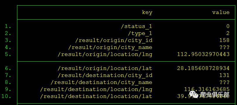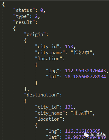 虽然在json文件中,代表目的地经度值的是一个简单的键值对:
