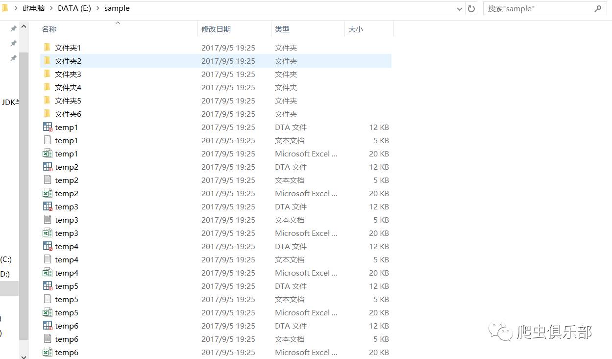 首先,我们分别生成5个文件夹,文本文档,excel文件,dta文件。《批量处理——输出文件名到文本文档》中有详细介绍,小编在这里就不再赘述了。键入以下命令: