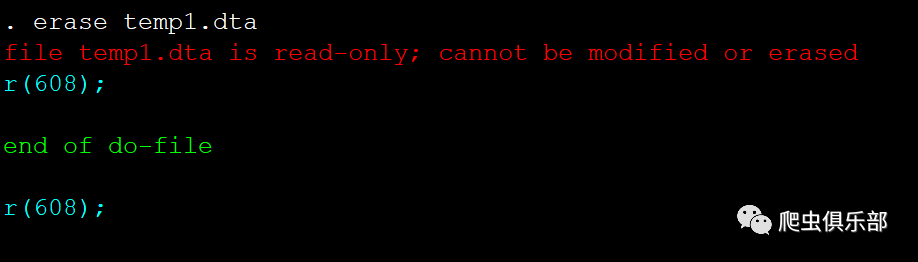 Dos命令中的del可以删除一个或多个文件,而stata中的erase一次只能删除一个文件。重复上面生成文件夹和文件的程序,再键入以下命令: