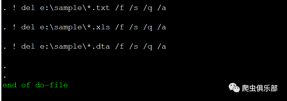 ! del e:\sample\*.dta /f /s /q /a //删除dta格式文件