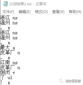 file write `handle' `"seg_list = jieba.posseg.cut(string)"' _n //对文本切词并显示词性