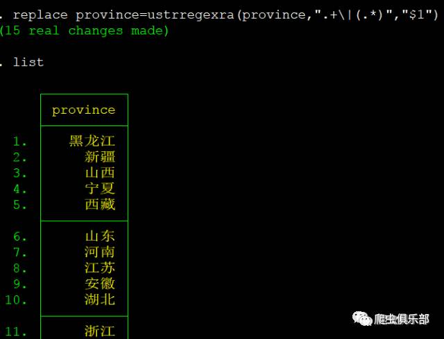 (2)replace province=ustrregexra(province,".+\|(.*)","$1")