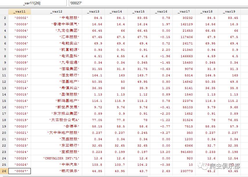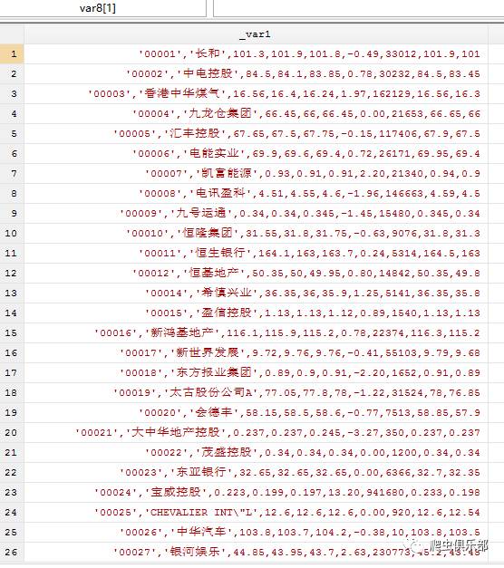 结果如下图,看惯股票代码形式的童鞋们可能要犯强迫症了!!!股票代码为什么要转成数值型呢?原因就是当你用面板数据做研究时,股票代码作为面板变量的话,需要其是数值型哦~