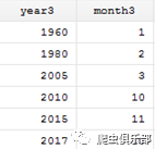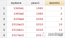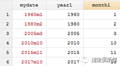 我们可以发现,输出的年月都是字符型数据,如果我们需要的数据是数值型数据,我们就使用下面这个命令: