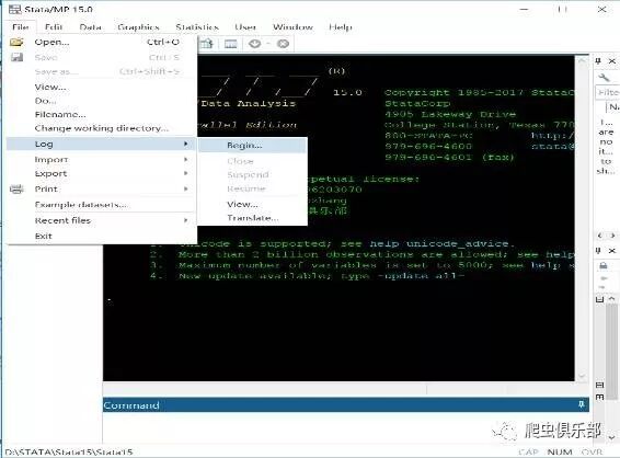 在STATA工具栏中点击File------>Log------>Begin