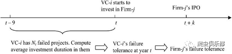 Ln(FailureToleranceij,0):其中“0”表示风险投资公司i对企业j进行第一轮投资的那一年,其中失败容忍度的计算方法如下(注意:上述方程中的t与下图中的t含义是不一样的)。